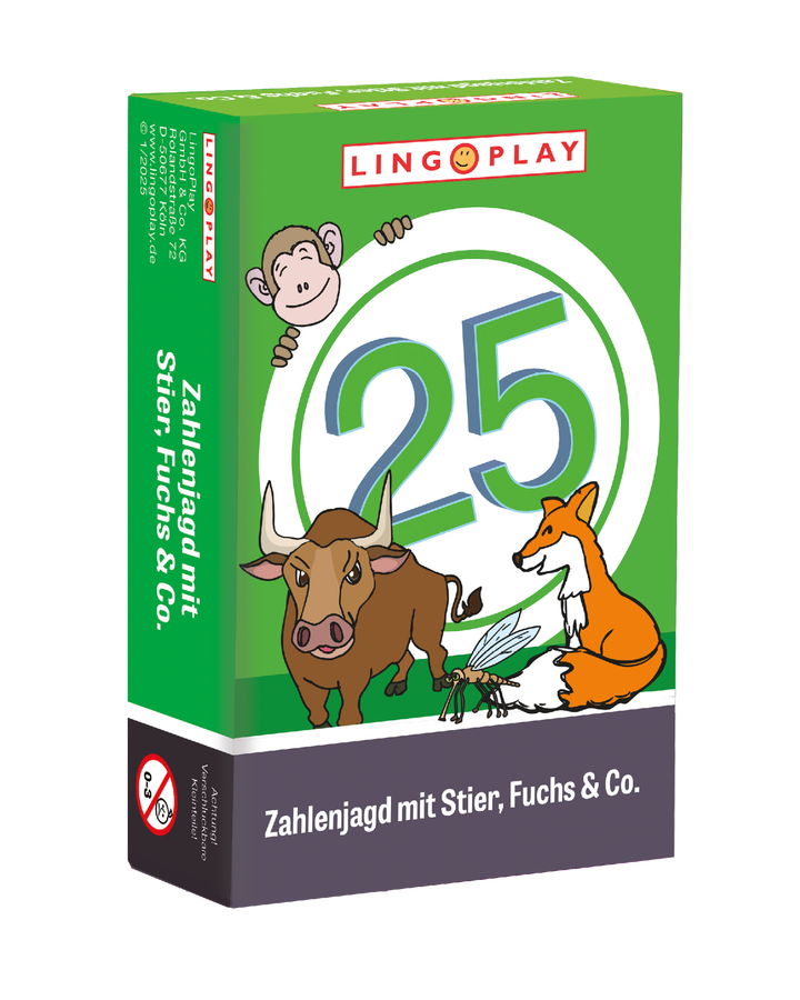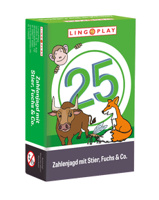 Wer sammelt als Erstes dreimal 25 Punkte? Klingt einfach, ist es aber nicht! Denn im Spiel mischen die tierischen Freunde Stier, Affe, Fuchs und Mücke kräftig mit und sorgen für unerwartete Wendungen. Doch mit Geschick und einem Quäntchen Glück schaffst du es bestimmt zum Sieg! Mit diesem flotten Spiel üben die Kinder ganz nebenbei Kopfrechnen bis und über 25 und verbessern dabei ihre Rechensicherheit.