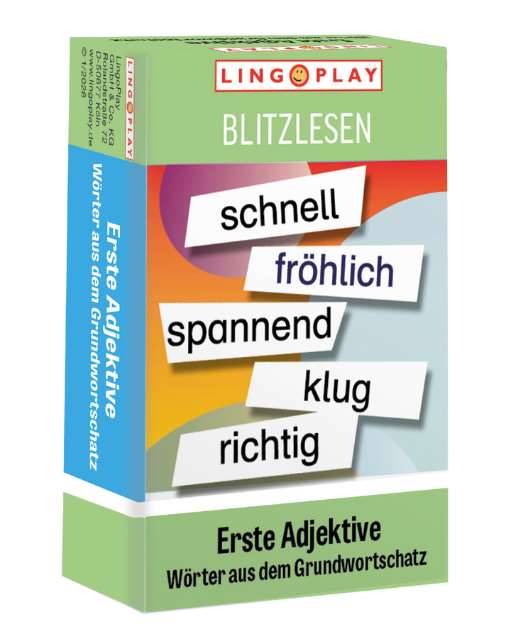 In diesem Spiel trainieren die Kinder, einfache Adjektive aus dem Grundwortschatz auf einen Blick zu erfassen. Blitzschnell müssen sie erkennen, ob es zwischen zwei Karten eine Wort-Wort-Übereinstimmung gibt. Damit bereitet das Spiel die Kinder ideal darauf vor, flüssig und verstehend zu lesen.