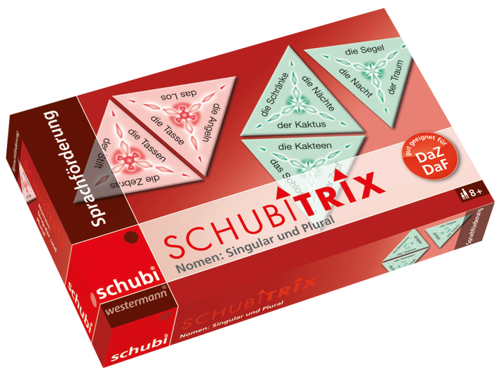 Mit diesem Dreieckdomino aus der SCHUBITRIX-Reihe festigen sich spielerisch die Pluralformen von Nomen.