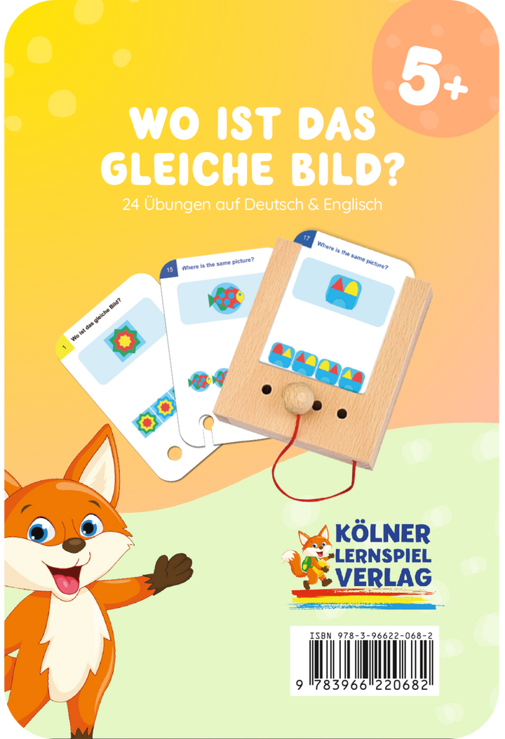 Der Kartensatz "Wo ist das gleiche Bild?" umfasst 24 spannende Übungen für Kinder ab 4 Jahren. In diesen Aufgaben müssen die Kinder zwischen verschiedenen Formen, Figuren oder Bildern das identische Bild finden, was ihre visuelle Wahrnehmung und Konzentration herausfordern. Die Schwierigkeit der Aufgaben steigt mit der Kartenzahl, was es zu einer spannenden Herausforderung für Kinder macht.