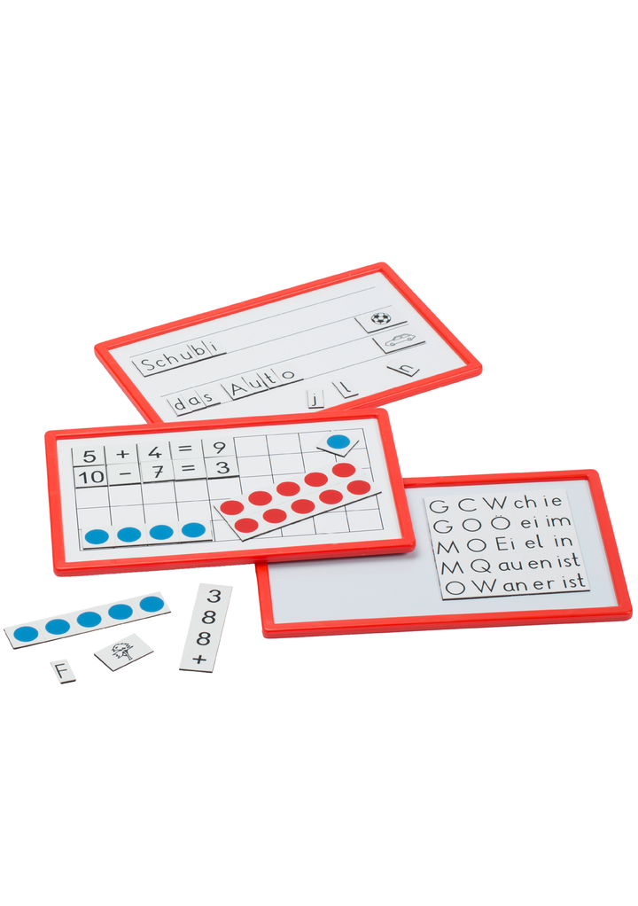 Inhalt: 55 magnetisch haftende Zahlen-, Operationszeichen- und Kreiselemente.