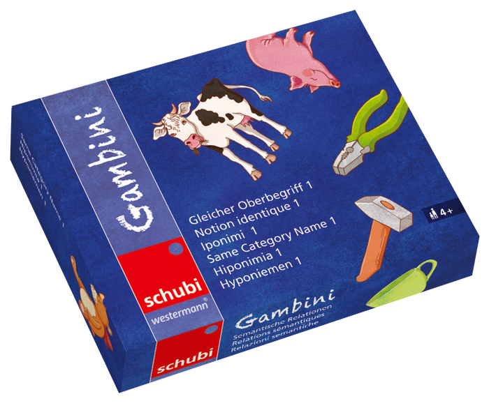 Contenu : Quatre jeux Gambini par boîte avec 48 images colorées et donc 24 paires de cartes (pour les jeux avec terme générique: 12 termes génériques avec 2 paires de cartes). Notice avec suggestions.