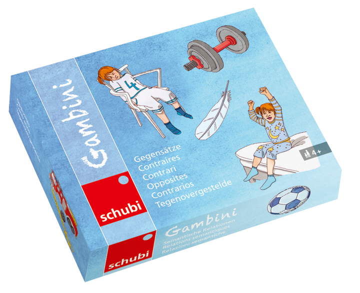 Inhalt: 4 Gambini mit insgesamt 48 farbigen Bildkarten und somit 24 Kartenpaaren, Anleitung mit Anregungen.