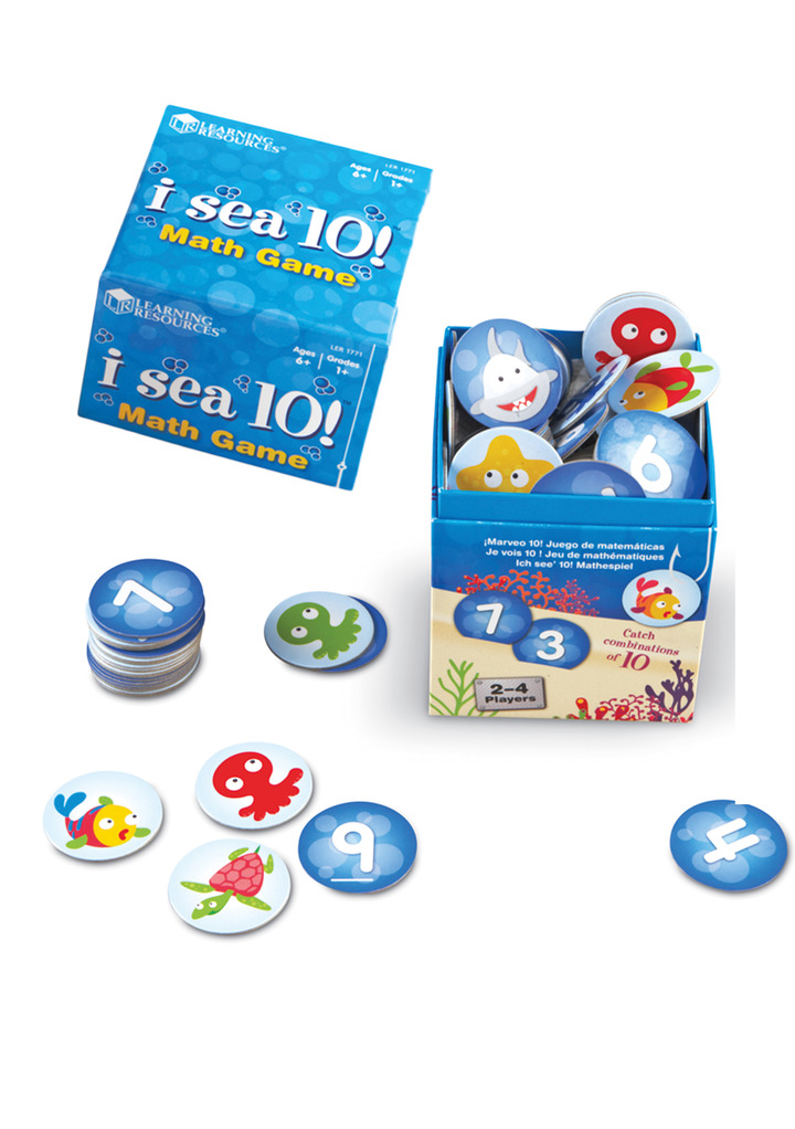 Hier werden spielerisch mathematische Fähigkeiten im Zahlenraum bis 10 trainiert. Die Spieler ziehen abwechselnd eine Karte und legen diese mit der Zahlenseite offen auf die Spielfläche. Wer als Erster sieht, dass zwei oder mehr Karten 10 ergeben, ruft „Ich seh 10" und bekommt die Karten. Ziel ist es, die meisten 10er- Kombinationen zu sammeln. Doch aufgepasst! Wer eine Hai-Karte zieht, verliert seinen ganzen Fang.