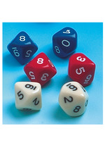 12 Würfel, 0-10 und Joker aus Kunststoff, je 4 rot, blau, weiß, Ø 2,5 cm.