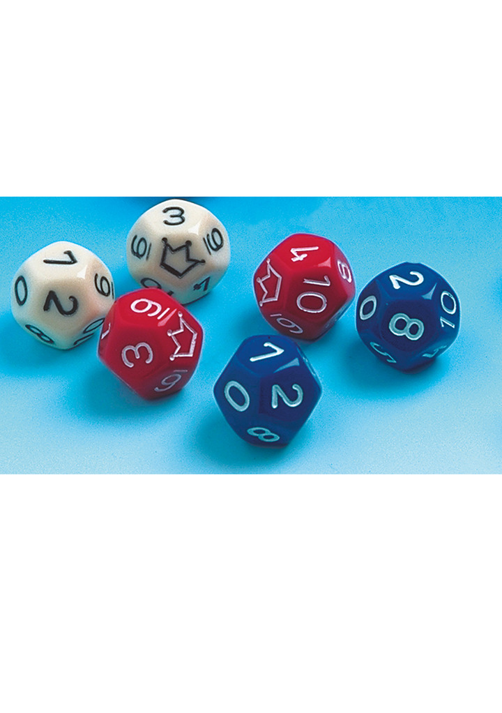 Schulwürfel Dodekaeder 0 - 10 und Joker, 12 Stück