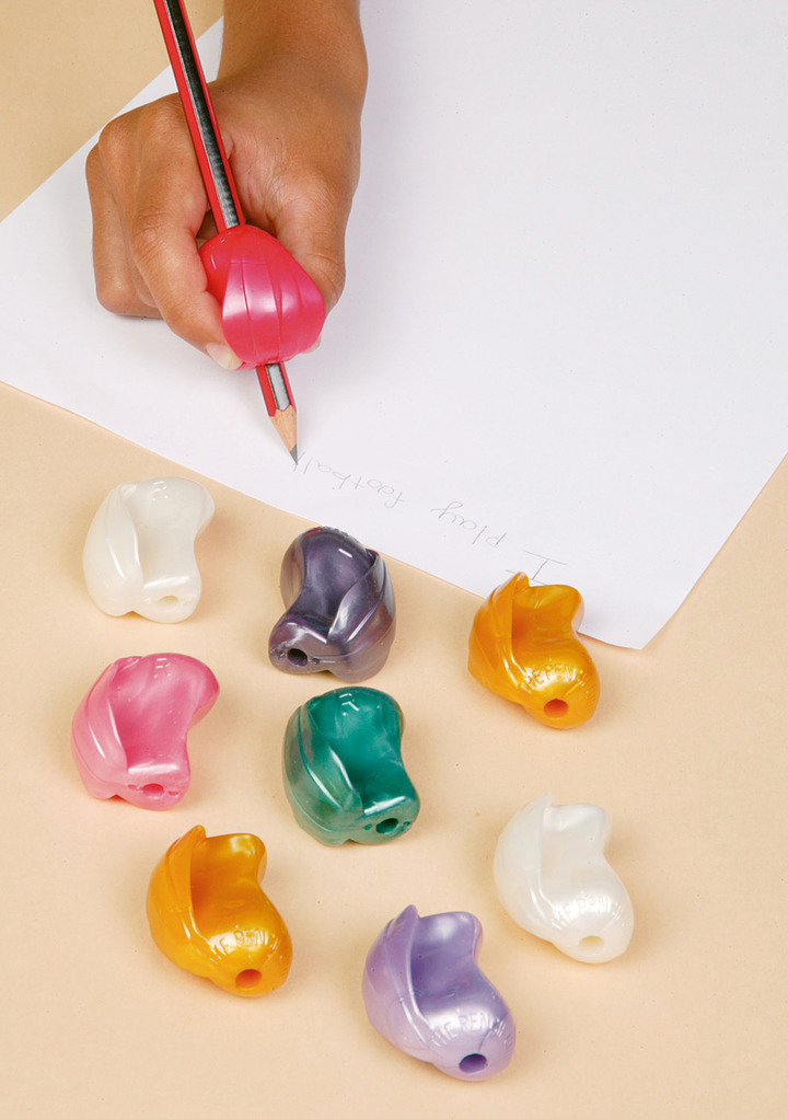 Guide-écriture extra grand, très souple avec forme pour les doigts. Adaptés aux gauchers et droitiers. En matière plastique, par 10 pièces, couleurs assorties.
