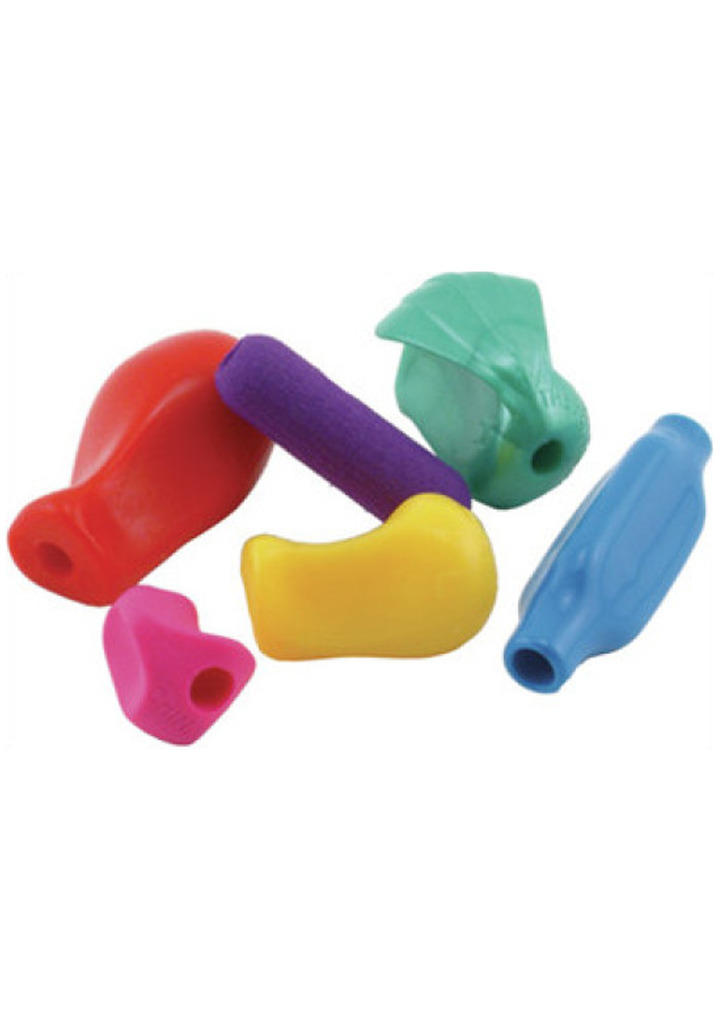 Auswahl mit 11 verschiedenen Griffhilfen in verschiedenen Farben aus Kunststoff. Für Links- und Rechtshänder geeignet.